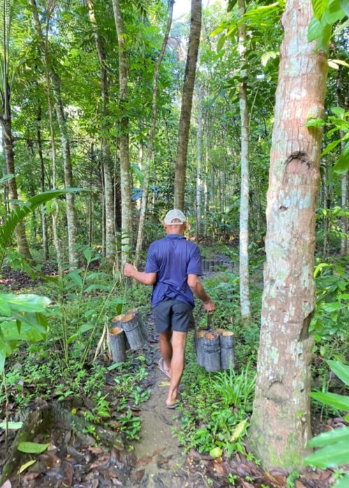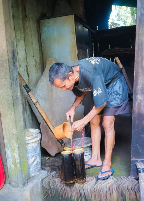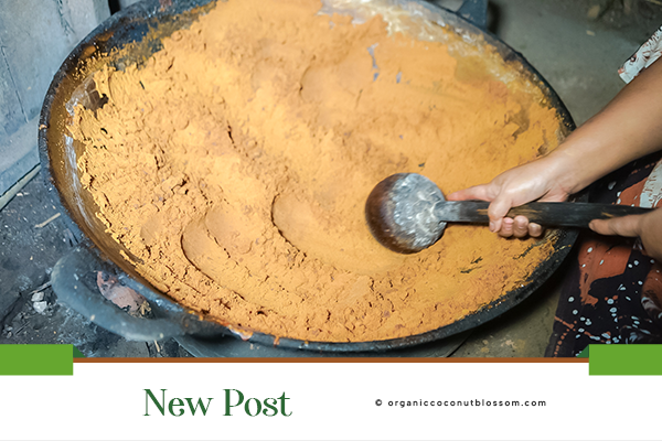 The sap is slowly heated to concentrate and form natural coconut sugar.